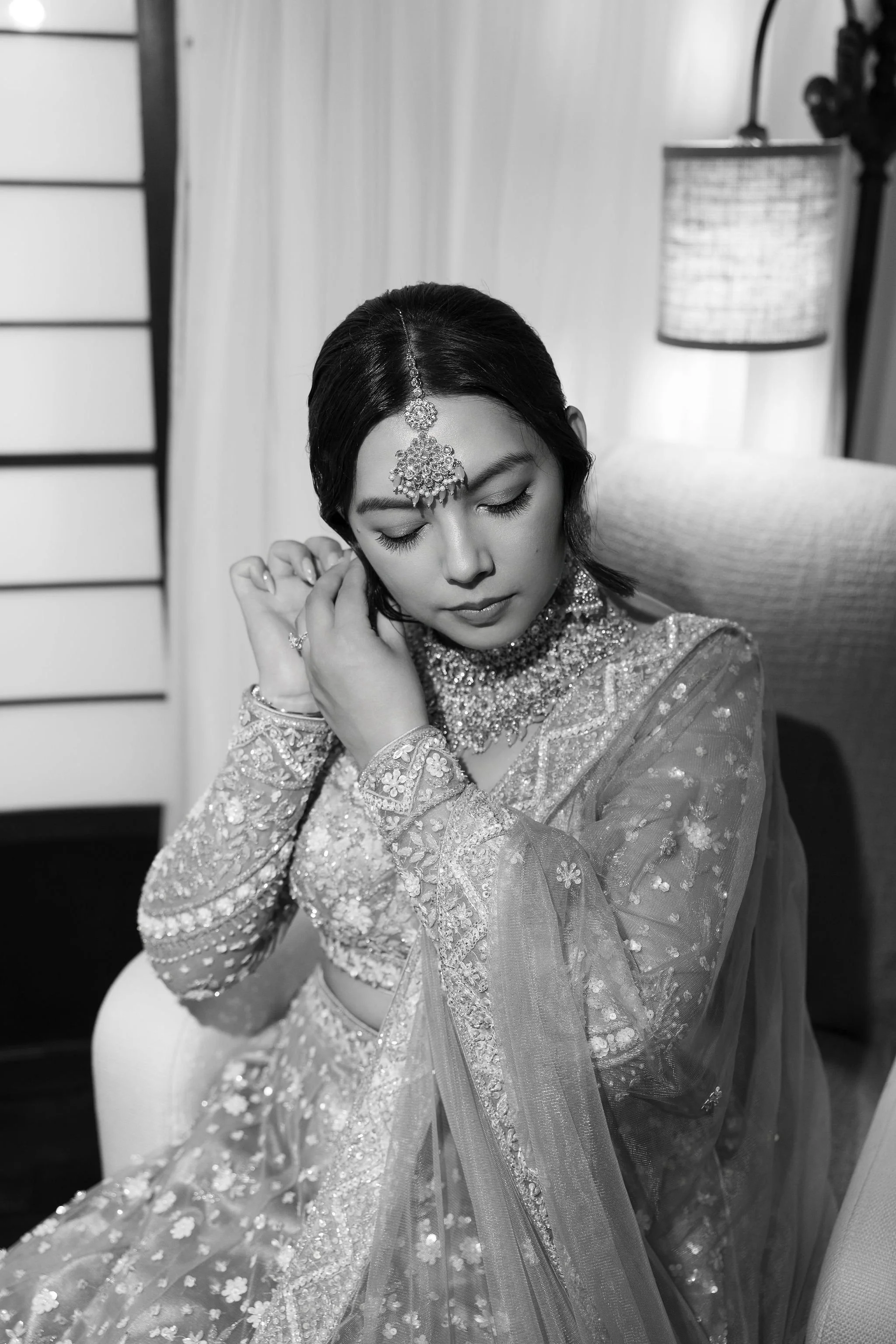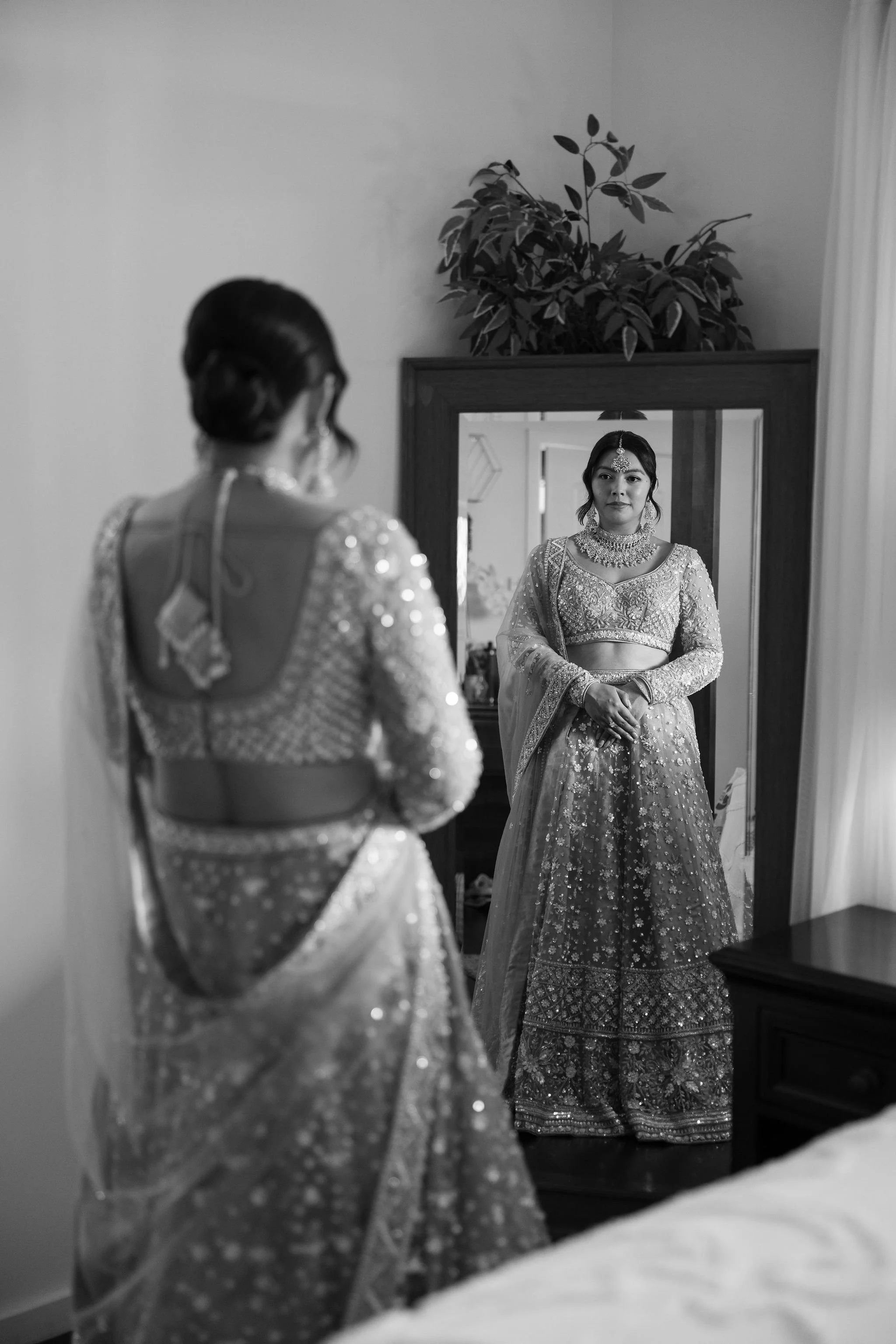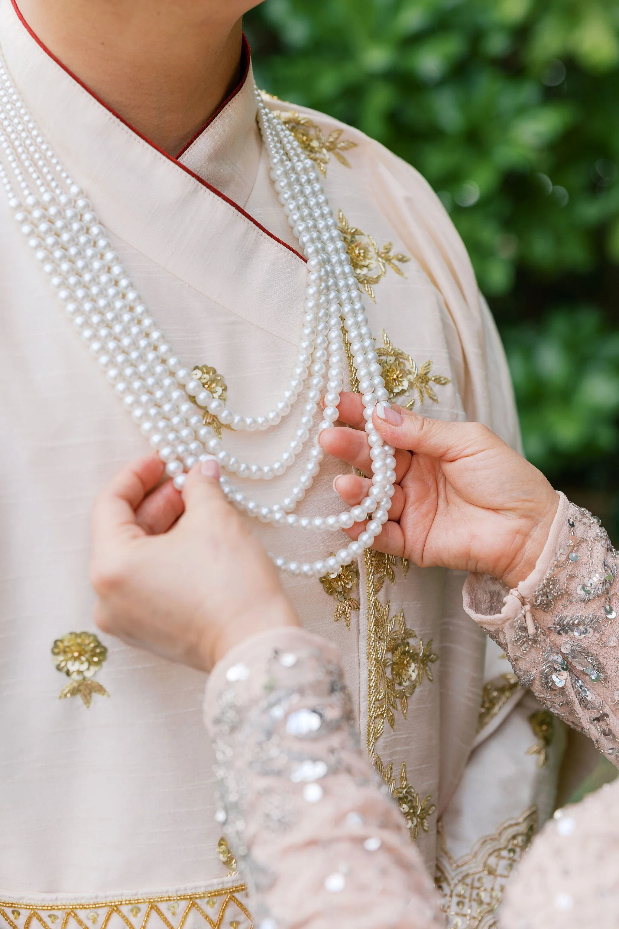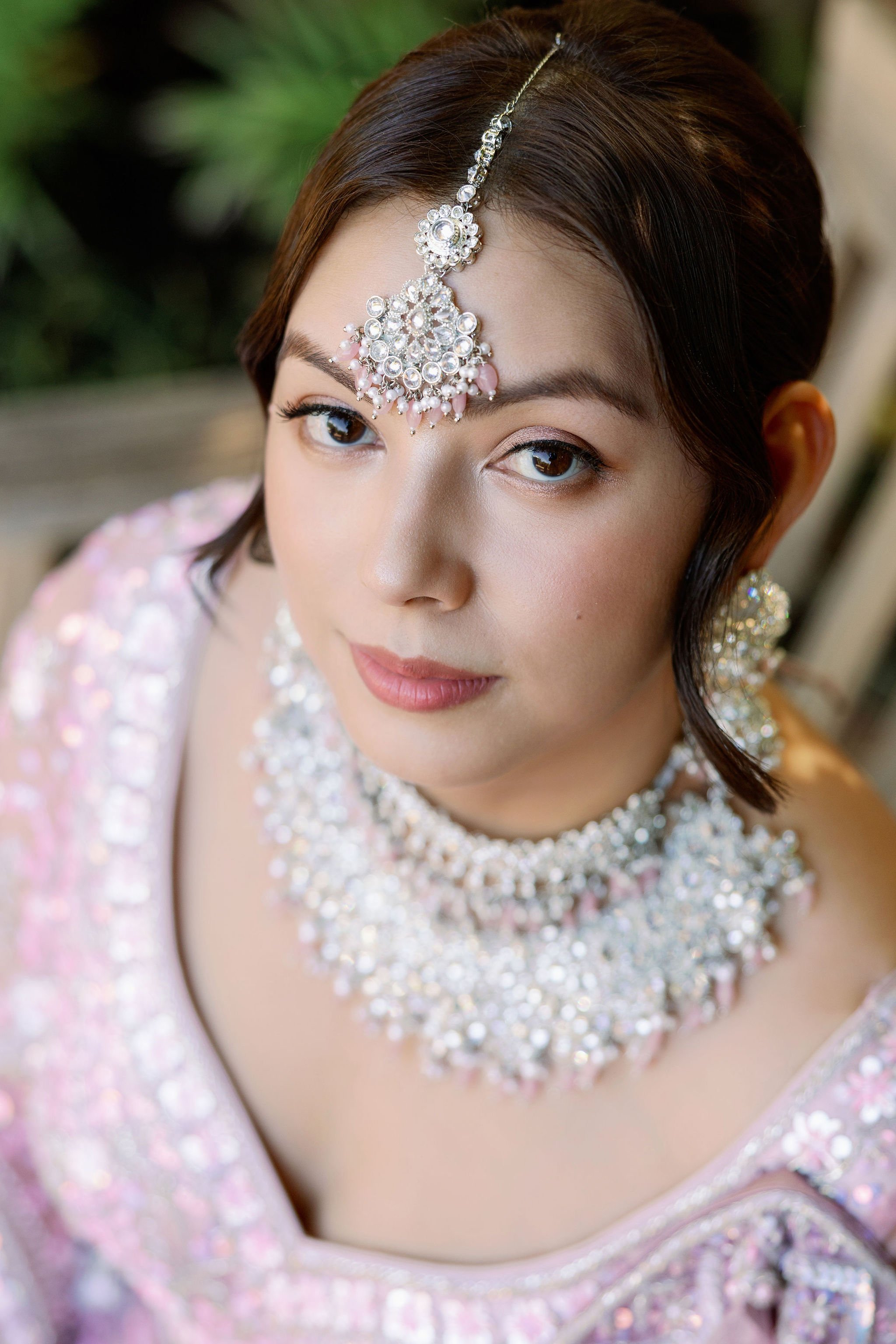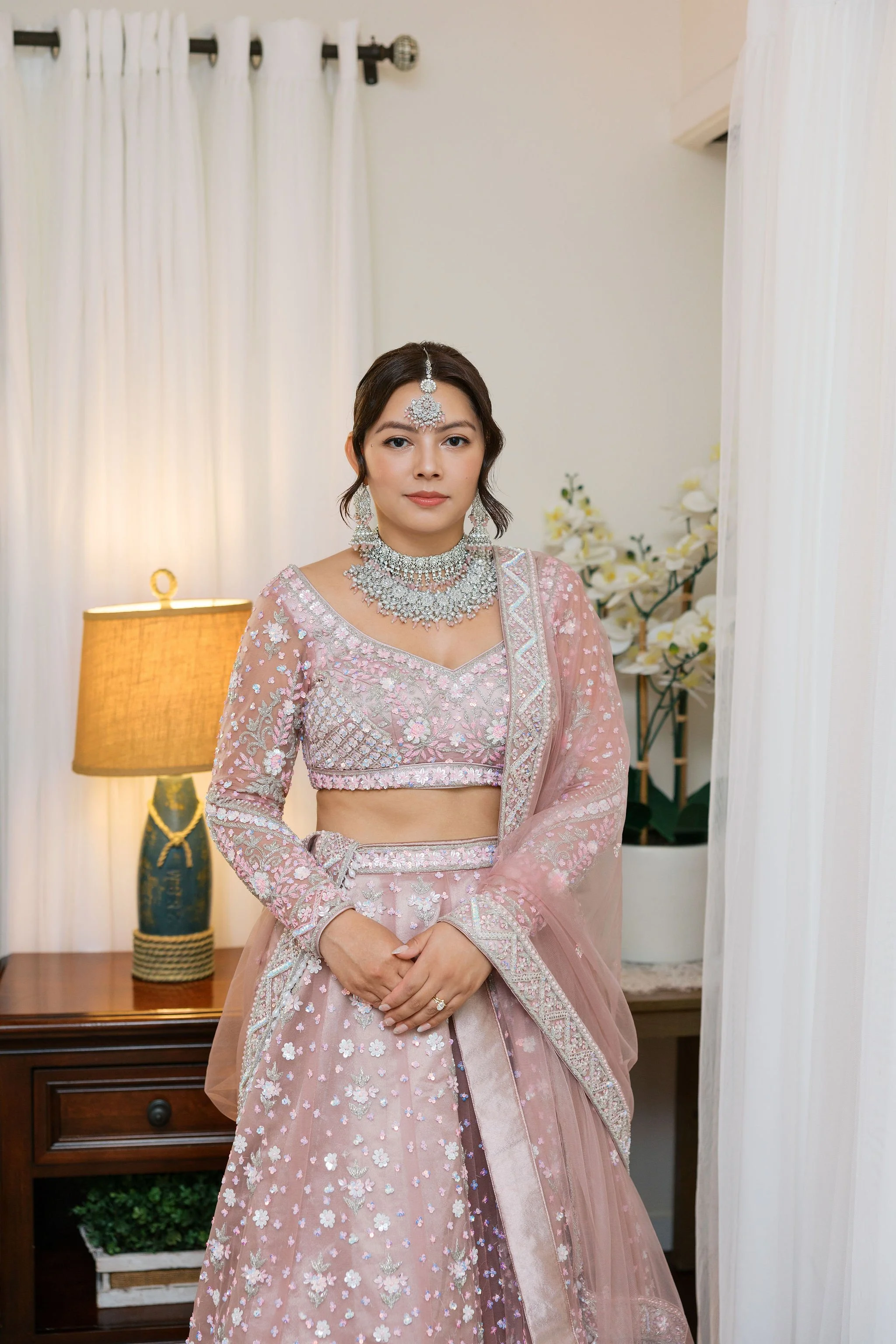 When Shradha stepped into her traditional Nepali bridal attire, the entire atmosphere shifted. The intricate details, elegant textures, and refined color palette created a timeless and sophisticated look against the tropical backdrop of Hawaii.