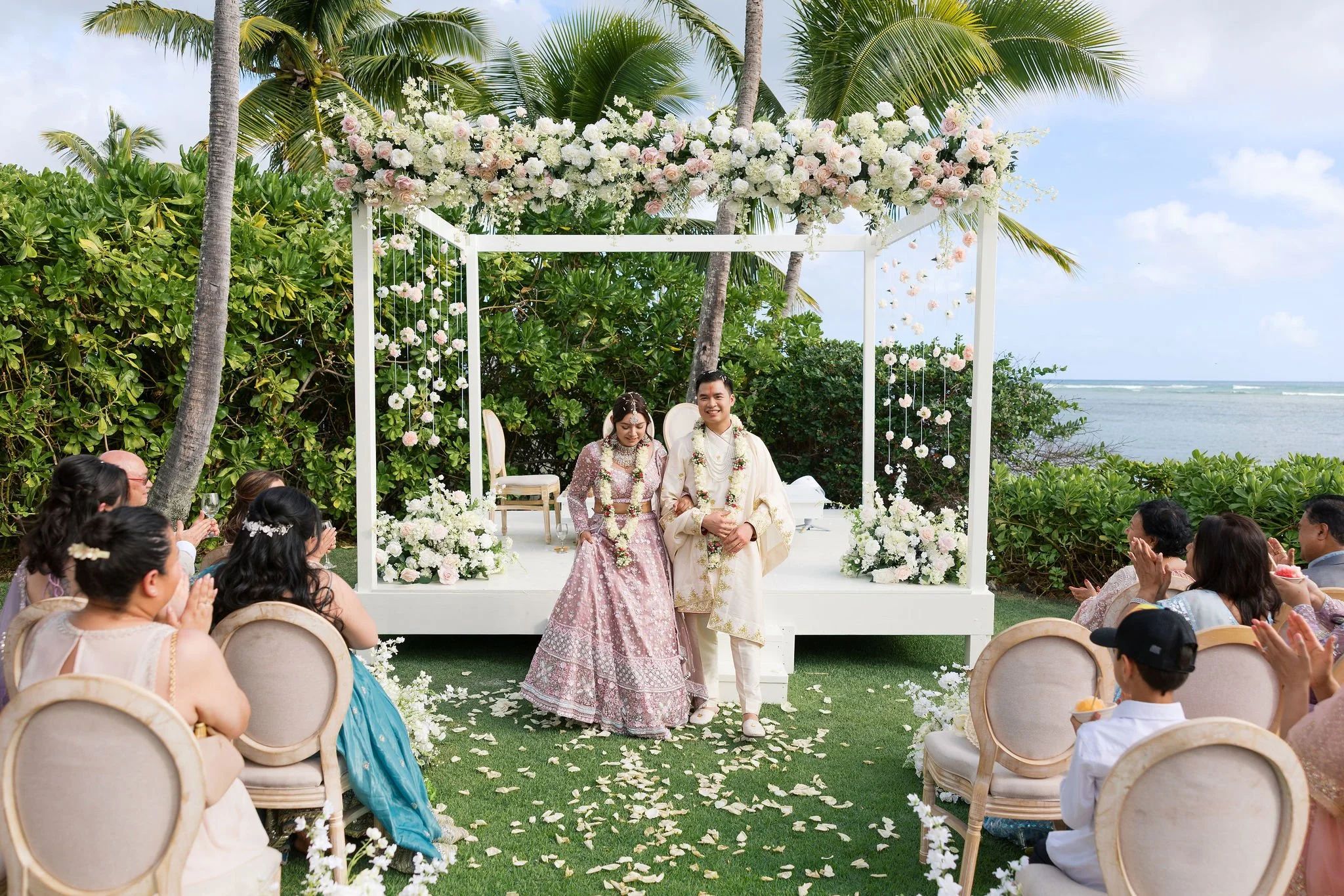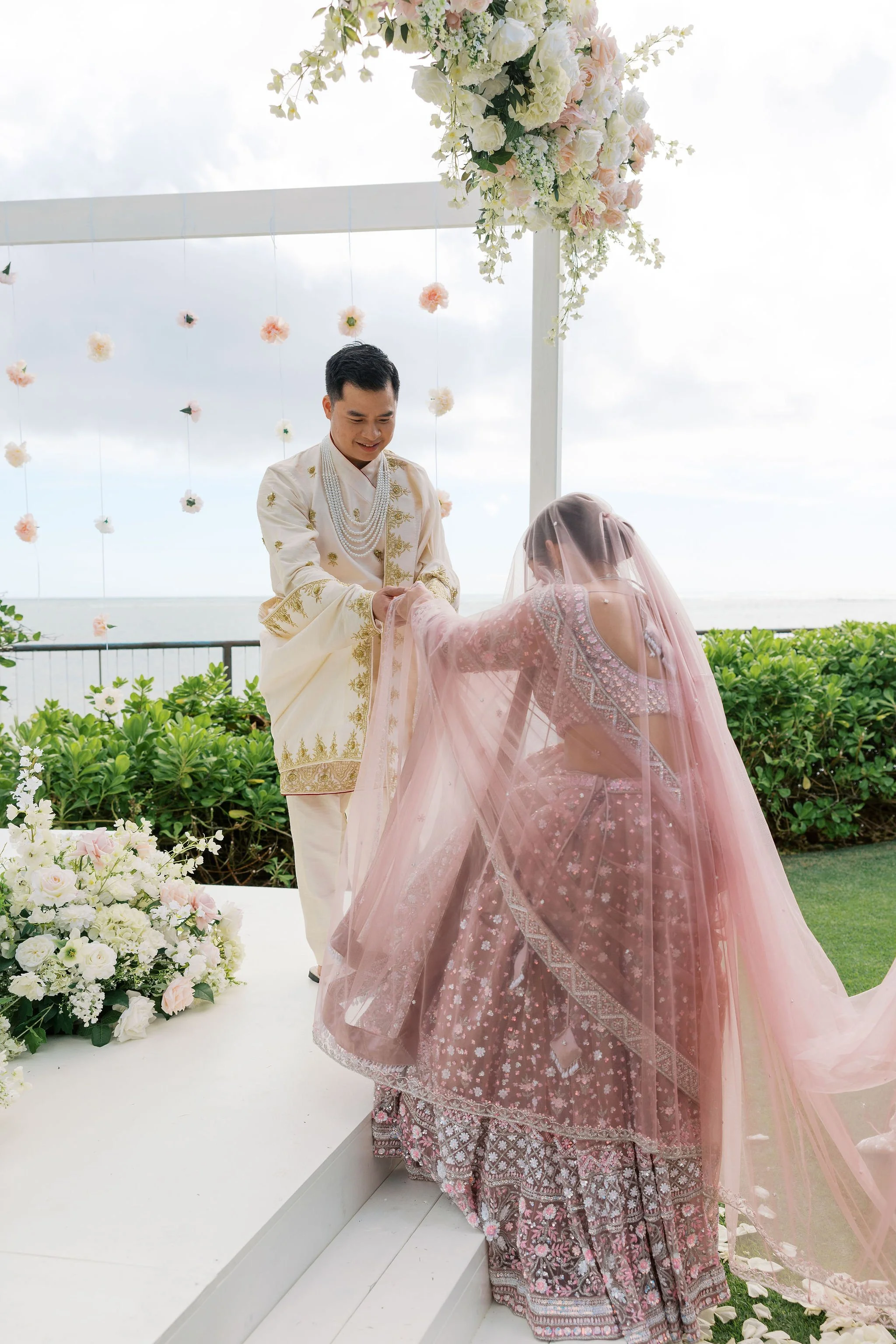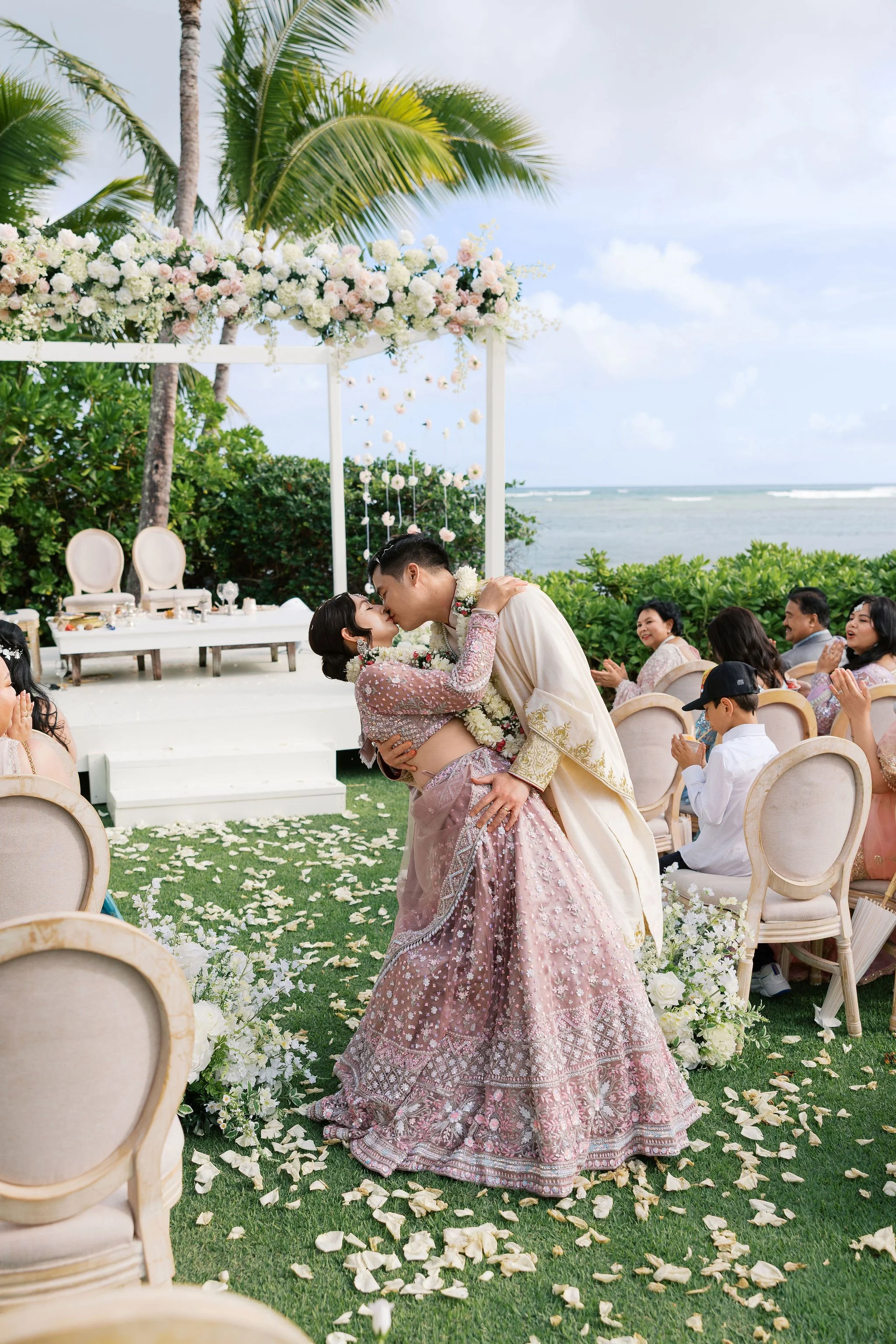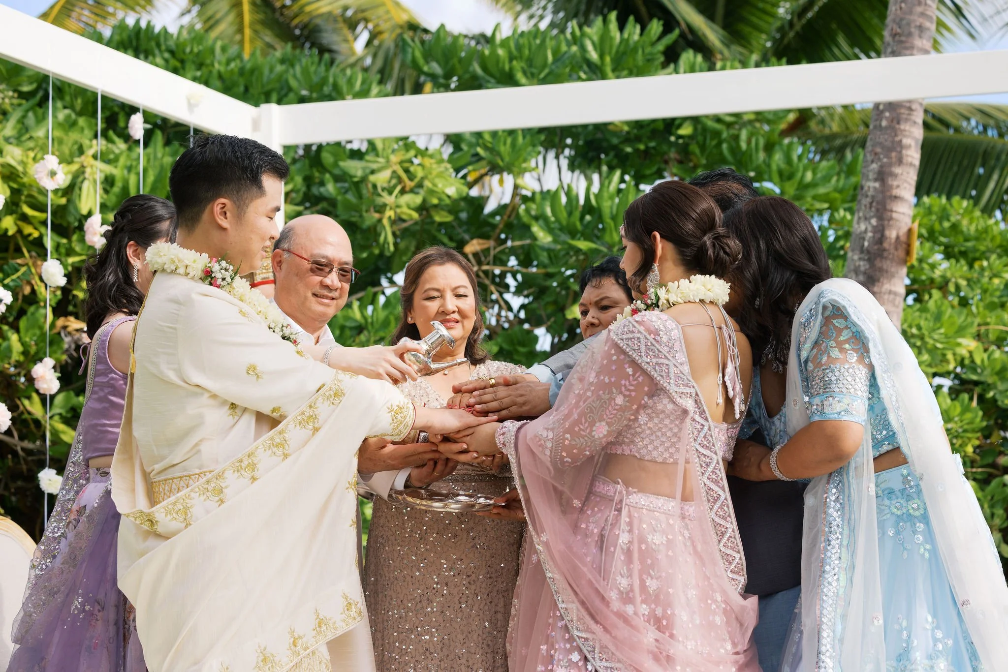 Shradha, originally from Nepal, and Christopher, a Vietnamese Chinese groom, chose Hawaii as the place to begin their married life. Surrounded by 21 of their closest family members and 7 children who traveled from California, they created an intimate and deeply personal celebration by the ocean.